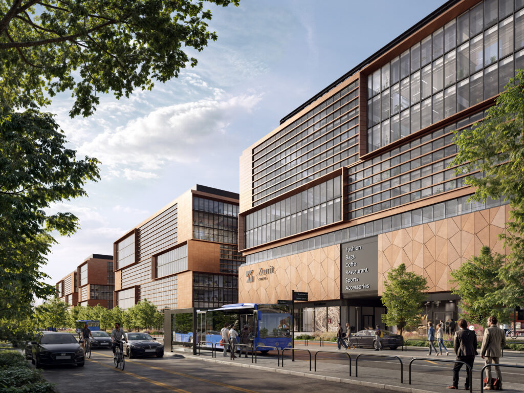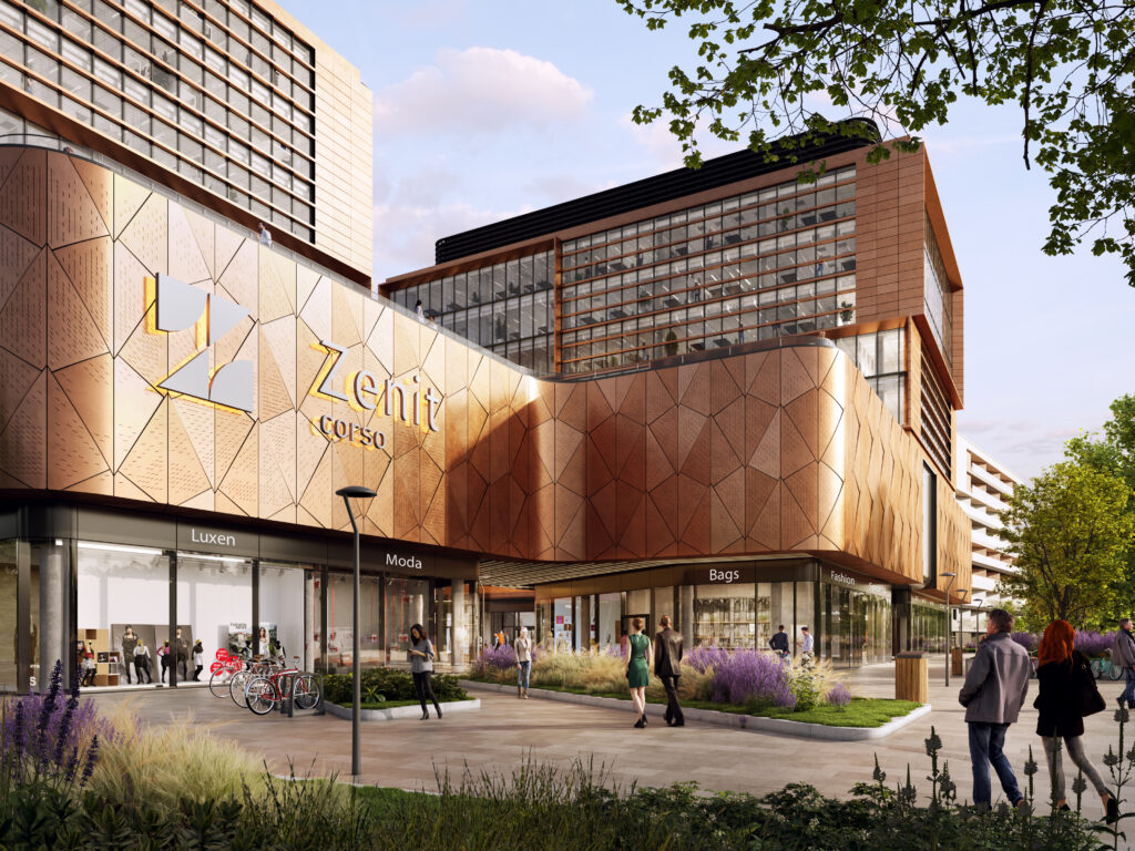 The Zenit Corso is a newly developed, energy-efficient commercial center around which a new city district is – named Zenit by Bayer – forming. The area is highly frequented but under-served in terms of service availability. The new shopping center provides a solution to this issue for customers.