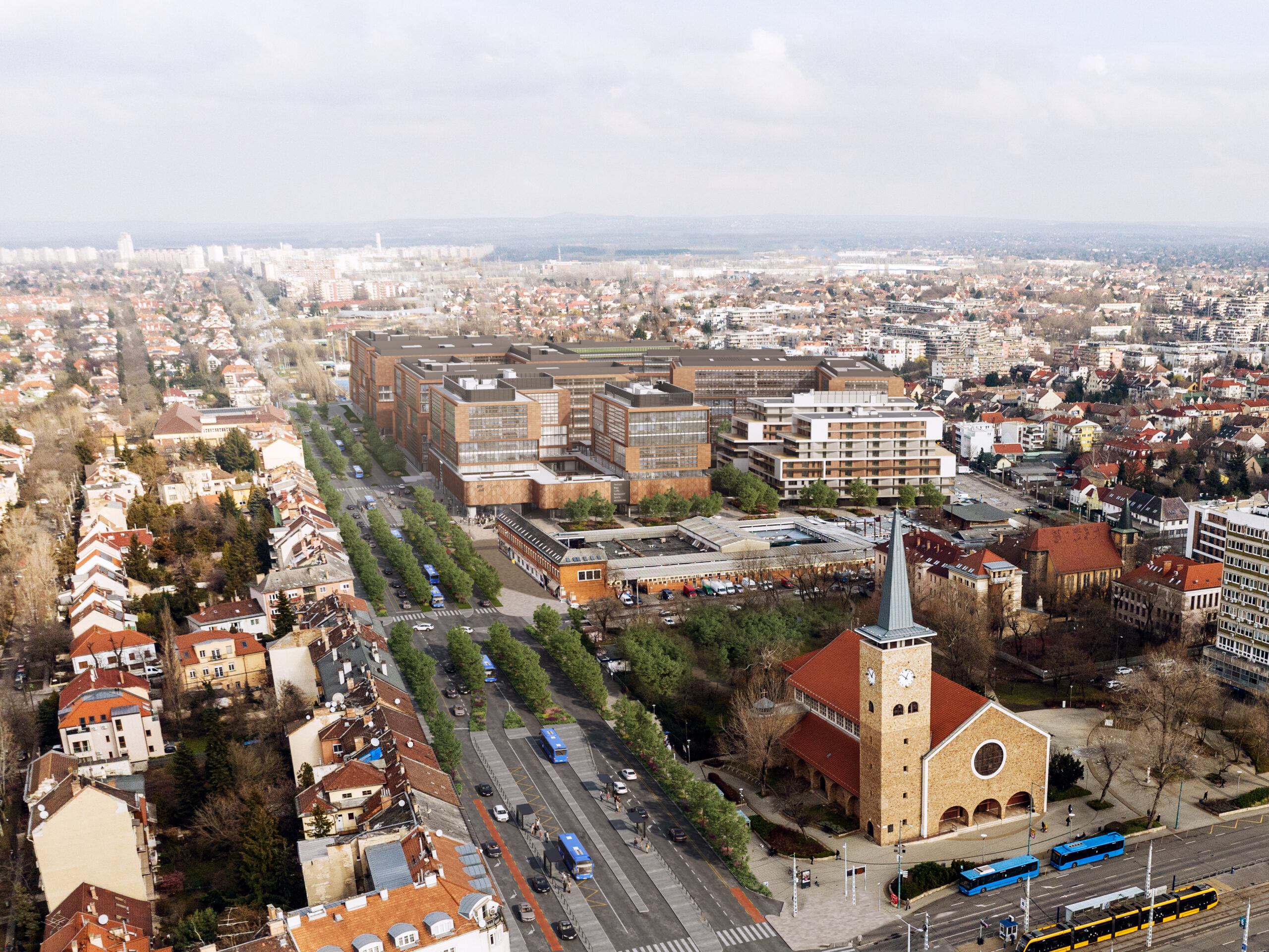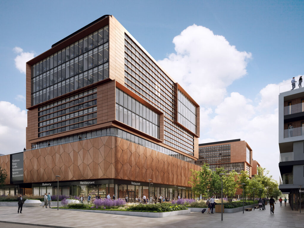The unique design of the building, which is open inside, will house a variety of shops opening directly onto the street, creating a combination of a shopping centre and a shopping street, giving residents the opportunity to shop and do their shopping close to their living space.